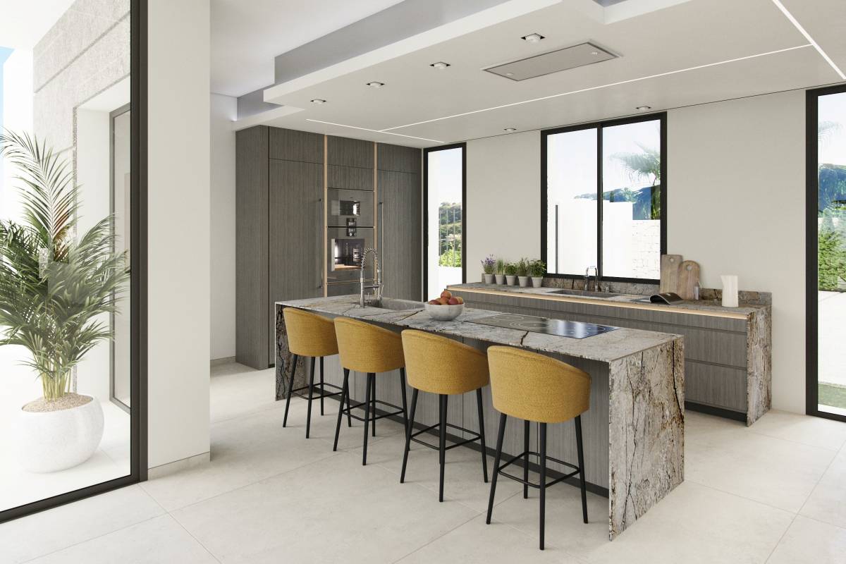 Das Innere der Villen ist so gestaltet, dass es maximalen Komfort und Luxus bietet. Mit sieben Schlafzimmern und sieben Bädern ist jeder Raum sorgfältig geplant, um Privatsphäre und Bequemlichkeit zu gewährleisten. Die Villen sind mit Klimaanlage und Fußbodenheizung ausgestattet, was das ganze Jahr über eine angenehme Atmosphäre schafft. Hochwertige Haushaltsgeräte und Einbauschränke verleihen Funktionalität und Stil. Die Integration einer Video-Gegensprechanlage und eines Ladesystems für Elektroautos spiegelt das Engagement für Technologie und Nachhaltigkeit wider.