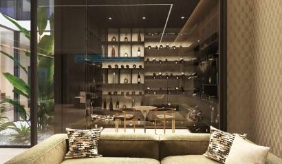 Im Inneren sind die Villen komplett möbliert und mit hochwertigen Geräten ausgestattet. Der Boden aus Feinsteinzeug verleiht Eleganz und Langlebigkeit. Die Immobilien verfügen über sechs Schlafzimmer und sieben Badezimmer und bieten viel Platz und Funktionalität. Die Smart-Home-Technologie und die Klimaanlage sorgen für eine komfortable und effiziente Umgebung. Zudem bietet die Fußbodenheizung Wärme in den kälteren Monaten. Einbauschränke bieten praktische und diskrete Aufbewahrung.