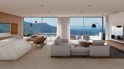 Das Äußere der Villa ist so gestaltet, dass es das mediterrane Klima optimal nutzt. Es verfügt über einen großen privaten Garten, der einen idealen grünen Raum für Entspannung und Unterhaltung im Freien bietet. Die Terrasse, perfekt ausgerichtet, ermöglicht es, den Meerblick zu genießen und ist der perfekte Ort für Abendessen im Freien oder einfach zum Entspannen am Ende des Tages. Darüber hinaus verfügt die Villa über einen privaten Pool, ein Luxus, der es ermöglicht, ein erfrischendes Bad in der Privatsphäre des eigenen Zuhauses zu genießen. Das Design des Gartens und der Terrasse ist darauf ausgelegt, sich harmonisch in die natürliche Umgebung von Benahavís zu integrieren und eine Oase der Ruhe und Schönheit zu bieten.