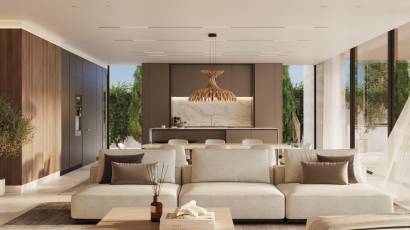 Das Innere der Villen ist mit einem Fokus auf Qualität und Komfort gestaltet. Die Feinsteinzeugböden verleihen einen Hauch von Eleganz, während die Fußbodenheizung und die Klimaanlage das ganze Jahr über für ein angenehmes Ambiente sorgen. Die Villen sind mit modernen Geräten und einem Smart-Home-System ausgestattet, das die Steuerung der Hausfunktionen erleichtert. Elektrische Rollläden und Einbauschränke vervollständigen die luxuriösen Merkmale dieser Immobilien.