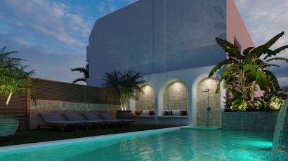 Die Außenbereiche dieser Bungalows sind so gestaltet, dass sie das mediterrane Klima optimal nutzen. Jede Immobilie verfügt über einen privaten Garten, ideal zum Entspannen im Freien oder für Familienaktivitäten. Darüber hinaus bieten die Terrassen zusätzlichen Raum für Freizeitaktivitäten, sei es für Mahlzeiten im Freien oder einfach zum Entspannen mit einem guten Buch. Das Solarium ist ein weiteres Highlight und bietet einen exklusiven Bereich, um in völliger Privatsphäre Sonne zu tanken. Die Gemeinschaft verfügt auch über Gartenanlagen, die die natürliche Umgebung ergänzen und eine ruhige und angenehme Atmosphäre schaffen.