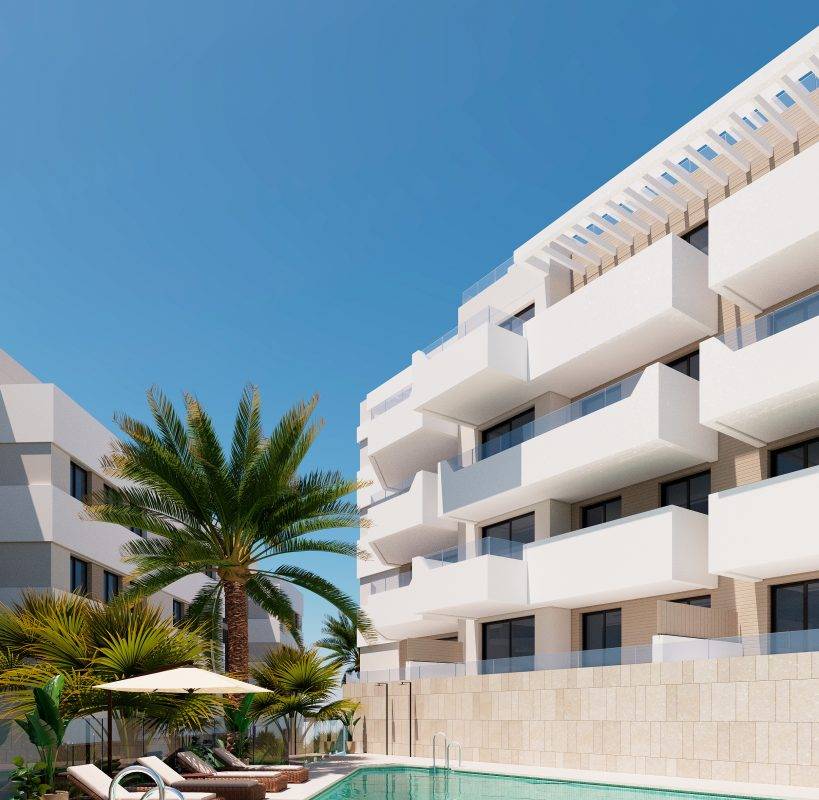 Die Innenräume der Apartments sind sorgfältig gestaltet, um einen modernen und funktionalen Raum zu bieten. Mit Feinsteinzeugböden spiegelt jedes Apartment einen zeitgenössischen Stil wider, der leicht zu pflegen ist. Die Wohnungen verfügen über zwei Schlafzimmer und zwei Badezimmer, ideal für kleine Familien oder Paare. Einbauschränke bieten effizienten Stauraum, während die enthaltenen Geräte sicherstellen, dass jedes Zuhause vom ersten Tag an bezugsfertig ist.