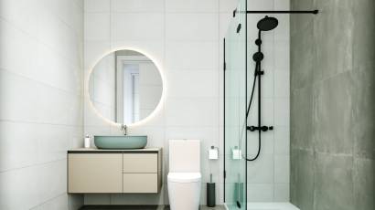 Jede Villa verfügt über 2 Schlafzimmer und 2,5 Bäder und besticht durch ihre Liebe zum Detail. Die Küchen sind komplett ausgestattet mit modernen Geräten und bereit, das Herzstück des Hauses zu sein. Die Bäder sind mit hochwertigen Waschtischmöbeln und integriertem Licht ausgestattet, was eine Kombination aus Praktikabilität und Design garantiert. Die Schlafzimmer beinhalten gefütterte Schränke mit Schubladeneinheiten, was den Stauraum optimiert. Zudem ist jede Immobilie für die Installation einer Klimaanlage über Leitungen vorbereitet, was zu jeder Zeit ein angenehmes Ambiente gewährleistet. Diese Innenräume, kombiniert mit hochwertigen Oberflächen, schaffen ein gemütliches und elegantes Zuhause.