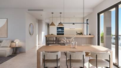 Die Wohnungen dieser Wohnanlage sind mit einem Fokus auf Komfort und Modernität gestaltet. Die Innenräume verfügen über Keramikböden, die einen eleganten Touch verleihen und pflegeleicht sind. Sicherheit und Komfort sind mit einer Video-Gegensprechanlage und elektrischen Rollläden in jeder Einheit gewährleistet. Die Küchen sind komplett mit modernen Geräten ausgestattet, was den Alltag erleichtert. Einbauschränke bieten viel Stauraum und halten die Räume ordentlich. Die Immobilien verfügen über Terrassen, die perfekt sind, um das mediterrane Klima zu genießen. Die Grundrissoptionen umfassen Wohnungen mit 2 und 3 Schlafzimmern, alle mit 2 Bädern, die sich an unterschiedliche Familienbedürfnisse anpassen.