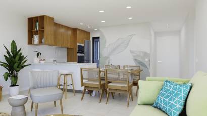Das Innere der Wohnungen ist so gestaltet, dass es maximalen Komfort und Funktionalität bietet. Alle Immobilien sind komplett möbliert, was den Umzug erleichtert und es ermöglicht, das neue Zuhause vom ersten Tag an zu genießen. Die Keramik- und Feinsteinzeugböden sind nicht nur ästhetisch ansprechend, sondern auch pflegeleicht. Die Küchen sind mit modernen Geräten ausgestattet, die die täglichen Aufgaben effizienter machen. Die Klimaanlage, ob installiert oder vorinstalliert, sorgt das ganze Jahr über für ein angenehmes Ambiente. Einbauschränke bieten reichlich Stauraum und halten das Zuhause ordentlich und organisiert.