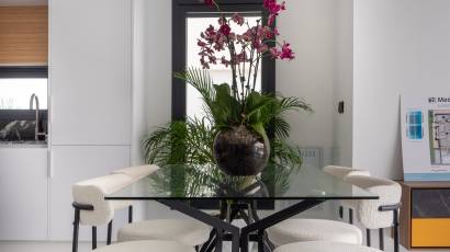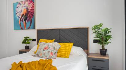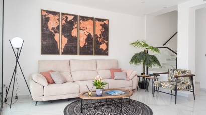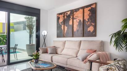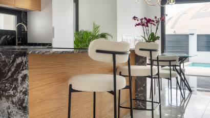 Das Innere dieser unabhängigen Wohnhäuser ist mit allen modernen Annehmlichkeiten ausgestattet. Sie verfügen über drei Schlafzimmer und drei Badezimmer und bieten einen großzügigen und funktionalen Raum für die ganze Familie. Die Keramikböden verleihen einen eleganten Touch und sind pflegeleicht. Die Häuser sind komplett möbliert und mit Haushaltsgeräten ausgestattet, was den Umzug erleichtert. Darüber hinaus bieten sie Merkmale wie Fußbodenheizung, Vorinstallation für Klimaanlagen, elektrische Rollläden und eine Video-Gegensprechanlage für mehr Sicherheit. Einbauschränke sorgen für effizienten und organisierten Stauraum.