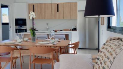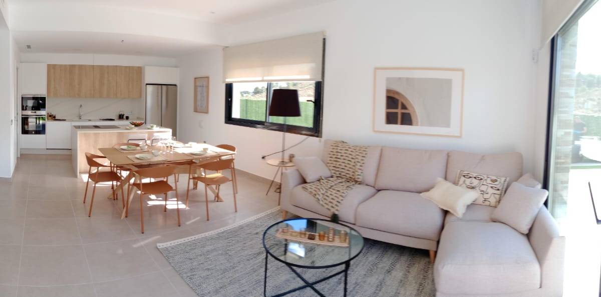 Im Inneren sind die Wohnhäuser mit Keramikböden ausgestattet, die eine Kombination aus Eleganz und einfacher Pflege bieten. Die Vorinstallation der Klimaanlage stellt sicher, dass das Zuhause an die klimatischen Vorlieben seiner Bewohner angepasst werden kann. Die Küchen sind komplett mit modernen Geräten ausgestattet, was den Alltag erleichtert. Darüber hinaus verfügt jedes Schlafzimmer über Einbauschränke, die effizienten Stauraum bieten und den Raum ordentlich halten. Die Einbindung einer Video-Gegensprechanlage bietet ein zusätzliches Maß an Sicherheit und Komfort.