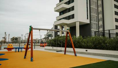 Die Wohnanlage bietet eine Vielzahl von Gemeinschaftsbereichen, die für das Vergnügen aller Bewohner gestaltet sind. Dazu gehört ein Gemeinschaftspool, ideal zum Abkühlen an heißen Tagen. Die Gartenanlagen bieten eine grüne und entspannende Umgebung, perfekt zum Spazierengehen oder Ausruhen. Für Sportliebhaber verfügt der Komplex über einen Padelplatz und ein Gemeinschaftsfitnessstudio, das einen aktiven Lebensstil fördert. Die Kleinen können sich auf dem Kinderspielplatz vergnügen, während die Gemeinschaftsgarage Komfort und Sicherheit für die Fahrzeuge der Bewohner bietet.
