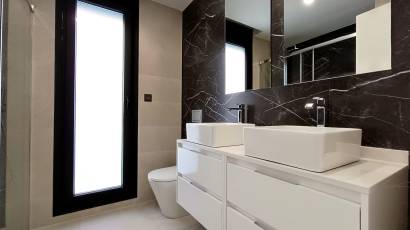 Im Inneren sind die Häuser mit Feinsteinzeugböden ausgestattet, die Langlebigkeit und Stil vereinen. Die Aufteilung umfasst 3 Schlafzimmer und 3 Badezimmer und bietet ausreichend Platz für die ganze Familie. Einbauschränke optimieren den Stauraum, während die Klimaanlage das ganze Jahr über für ein angenehmes Raumklima sorgt. Moderne Haushaltsgeräte erleichtern den Alltag und machen diese Häuser bezugsfertig.