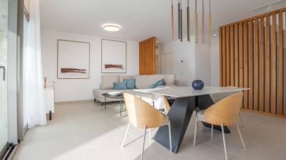 Das Innere dieser unabhängigen Häuser ist darauf ausgelegt, maximalen Komfort und Funktionalität zu bieten. Ausgestattet mit Klimaanlage und Fußbodenheizung, garantieren sie das ganze Jahr über eine angenehme Temperatur. Die integrierte Hausautomation ermöglicht eine effiziente Steuerung der Anlagen, während elektrische Rollläden und die Video-Gegensprechanlage ein zusätzliches Maß an Komfort und Sicherheit bieten. Die Häuser sind komplett möbliert und mit hochwertigen Geräten ausgestattet, bezugsfertig. Einbauschränke bieten viel Stauraum, und der Whirlpool ist ein zusätzlicher Luxus für die tägliche Entspannung.