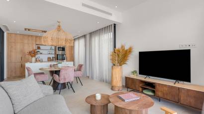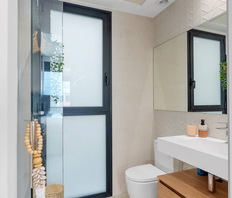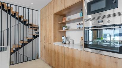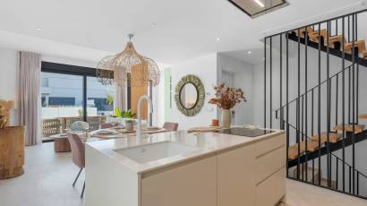 Das Innere der Reihenhäuser ist mit einem Fokus auf Funktionalität und Komfort gestaltet. Mit einer Aufteilung, die drei Schlafzimmer und zwei Badezimmer umfasst, ist jeder Raum optimiert, um Komfort und Privatsphäre zu bieten. Die Böden aus Feinsteinzeug verleihen einen Hauch von Eleganz und sind pflegeleicht, was sie ideal für den täglichen Gebrauch macht. Einbauschränke in den Schlafzimmern bieten effizienten Stauraum und halten die Räume aufgeräumt und organisiert. Die modernen Geräte sorgen dafür, dass die Küche ab dem ersten Tag einsatzbereit ist, was den Alltag der Bewohner erleichtert. Das Klimaanlagensystem garantiert das ganze Jahr über eine angenehme Umgebung, angepasst an die Bedürfnisse jeder Jahreszeit.