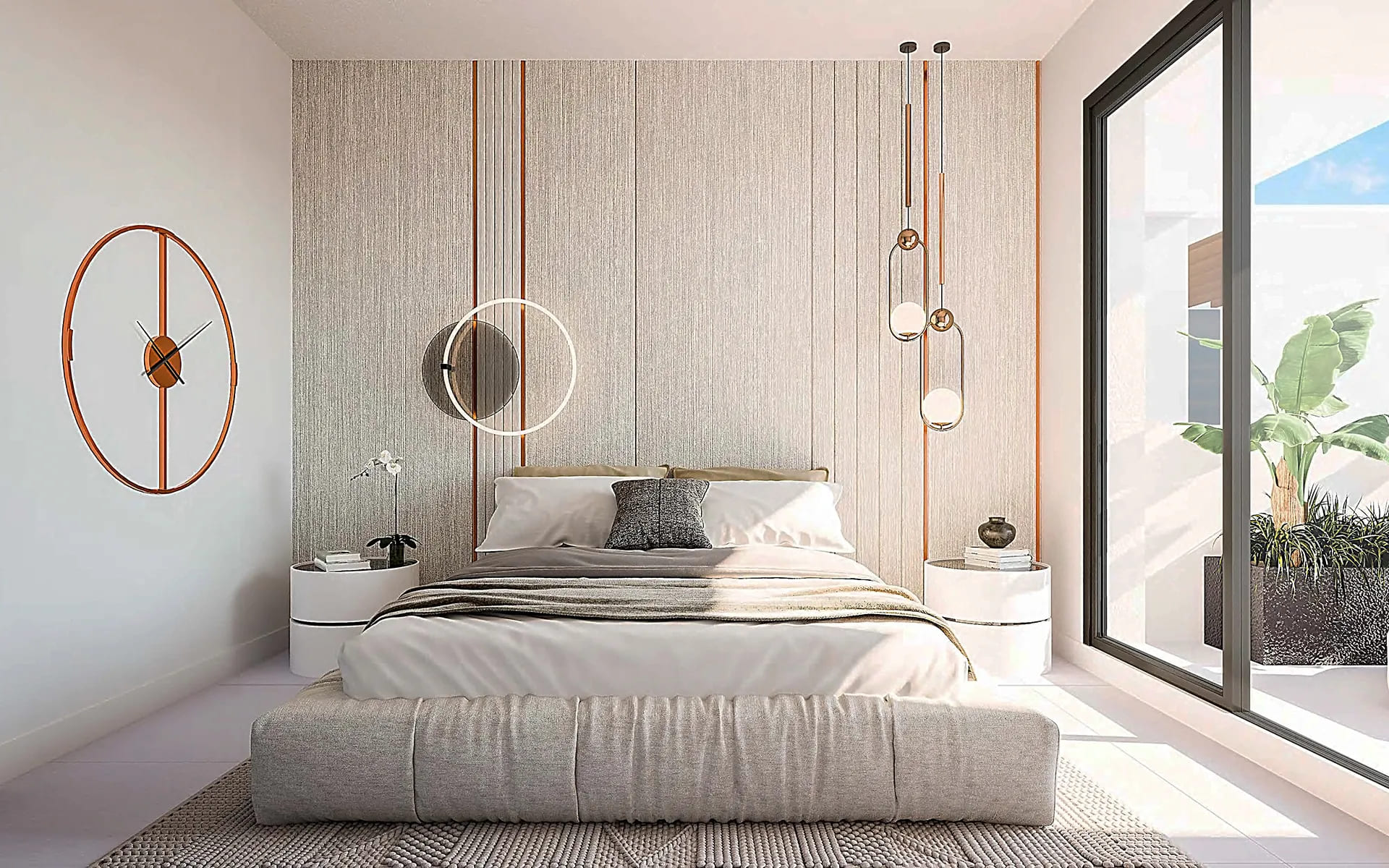 Das Innere der Wohnungen wurde entworfen, um eine moderne und komfortable Atmosphäre zu bieten. Alle Immobilien verfügen über Feinsteinzeugböden, die einen Hauch von Eleganz verleihen und pflegeleicht sind. Die Technologie ist in jeder Ecke präsent, mit Smart-Home-Systemen, die die Hausverwaltung erleichtern, Klimaanlagen, die das ganze Jahr über eine angenehme Temperatur gewährleisten, und Fußbodenheizung, die außergewöhnlichen thermischen Komfort bietet. Die Küchen sind mit hochwertigen Geräten ausgestattet, und die Einbauschränke in den Schlafzimmern bieten viel Stauraum. Die Bäder, die je nach Typologie in zwei oder drei Konfigurationen erhältlich sind, sind mit modernen und funktionalen Oberflächen gestaltet.