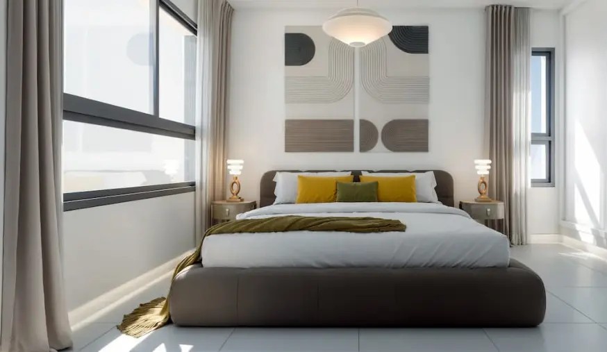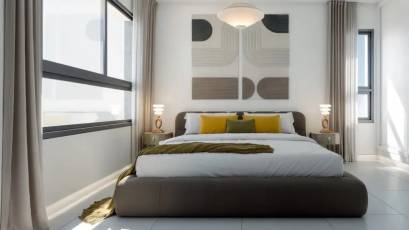 Im Inneren sind die Häuser mit Merkmalen ausgestattet, die maximalen Komfort gewährleisten. Jedes Reihenhaus verfügt über drei Schlafzimmer und drei Badezimmer und bietet somit einen großzügigen und funktionalen Raum für die ganze Familie. Einbauschränke sind ein Standardmerkmal und bieten praktische und elegante Aufbewahrungslösungen. Die Raumaufteilung wurde so gestaltet, dass sie das natürliche Licht und die Belüftung optimiert und in jedem Winkel des Hauses eine gemütliche und helle Atmosphäre schafft.