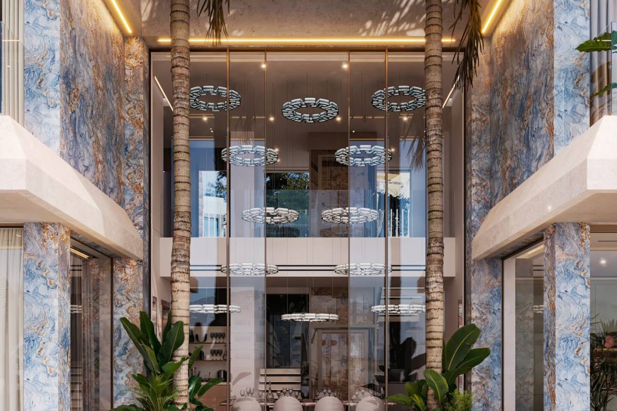 Das Innere der Villen wurde mit Blick auf Komfort und Funktionalität gestaltet. Jede Villa verfügt über fünf Schlafzimmer und sechs Badezimmer und bietet viel Platz und Komfort für die ganze Familie. Die Integration eines Smart-Home-Systems ermöglicht es den Bewohnern, verschiedene Aspekte des Hauses effizient und modern zu steuern. Einbauschränke in den Schlafzimmern bieten praktische und elegante Aufbewahrungslösungen. Darüber hinaus verfügt jede Villa über eine Garage, die ausreichend Platz für Fahrzeuge und zusätzlichen Stauraum bietet.
