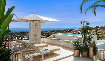Das Außendesign dieser Villen in Marbella ist einfach spektakulär. Jede Immobilie verfügt über einen privaten Garten, ideal, um das mediterrane Klima zu genießen. Der private Pool in jeder Villa bietet einen perfekten Ort zum Entspannen und Sonnenbaden. Darüber hinaus bieten die großzügigen Terrassen einen idealen Ort für Mahlzeiten im Freien oder einfach, um den Meerblick zu genießen. Das Solarium ist ein weiteres Highlight und bietet zusätzlichen Raum für Freizeit und Entspannung mit der Möglichkeit, die Panoramaaussicht auf die Umgebung zu genießen.
