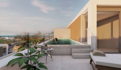 Die Außenbereiche dieser Immobilien sind darauf ausgelegt, das mediterrane Klima optimal zu nutzen. Jedes Reihenhaus verfügt über eine private Terrasse, ideal zum Entspannen oder für gesellige Momente mit Freunden und Familie. Zudem gibt es einen privaten Garten, der einen Hauch von Natur und Privatsphäre hinzufügt. Die Einbeziehung einer Pergola bietet Schatten und Stil, während der private Pool ein Luxus ist, der an den heißesten Tagen für Erfrischung sorgt. Die Nähe zum Meer, nur 2 km entfernt, macht die Aussicht zu einem herausragenden Merkmal dieser Häuser.