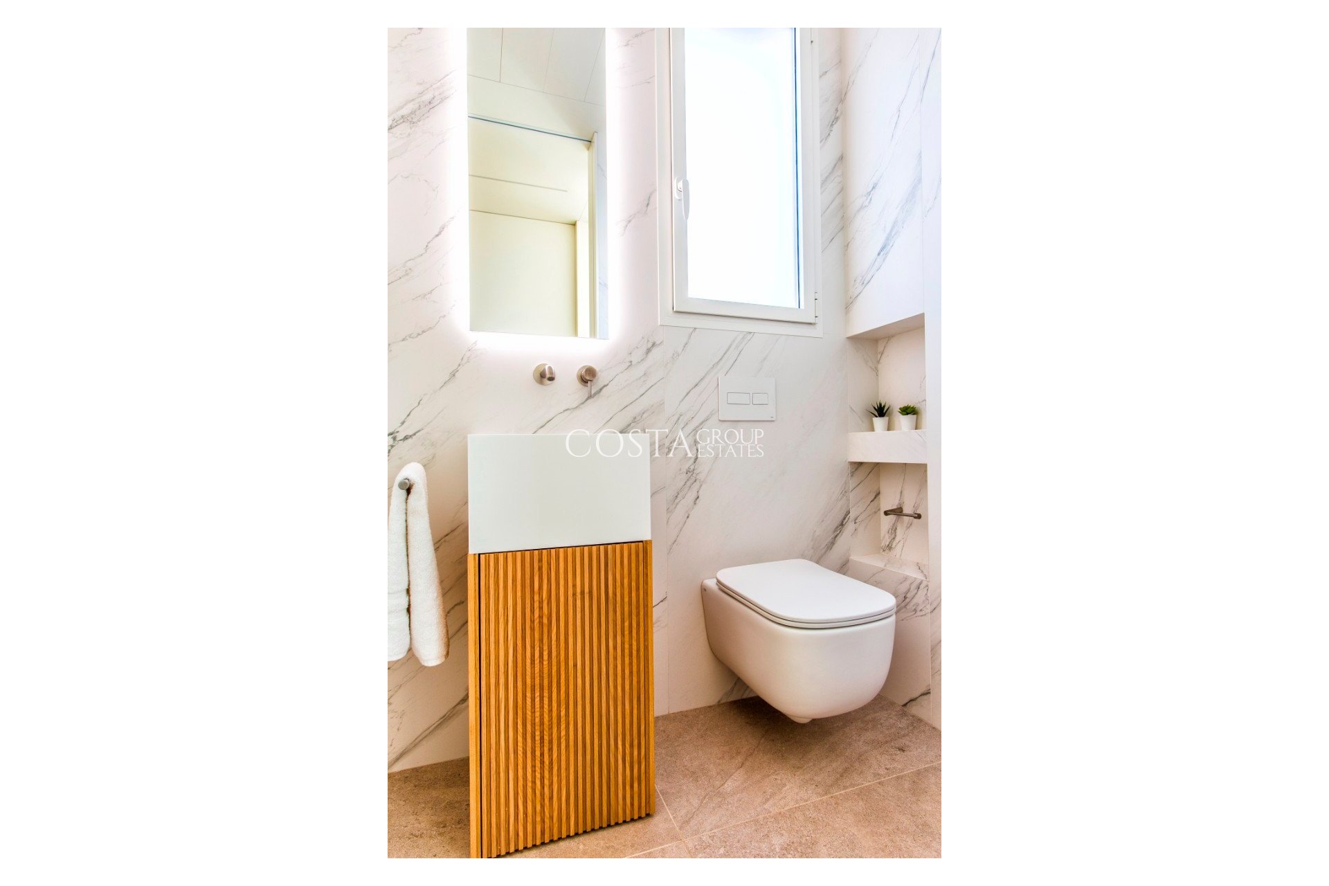 In dem ruhigen Viertel La Fustera in Benissa gelegen, bietet diese beeindruckende Villa aus dem Jahr 2023 eine Mischung aus zeitgenössischem Luxus und mediterranem Charme. Nur einen kurzen Spaziergang von den Sandstränden und eine kurze Autofahrt von den lebhaften Zentren Calpe und Moraira entfernt, bietet dieser nach Südosten ausgerichtete Rückzugsort einen atemberaubenden Meerblick von seinem 800 m² großen, erhöhten Grundstück. Mit 355 m² auf drei durchdachten Ebenen ist dieses Haus eine Oase des Stils und des Komforts. Das Herzstück der Villa ist der luftige, offen gestaltete Wohnbereich, in dem eine Gourmetküche mit eleganten weißen Schränken und natürlichen Holzakzenten nahtlos in ein helles Wohnzimmer übergeht. Ausgedehnte Glasschiebetüren umrahmen den glitzernden Infinity-Pool und die gepflegten Gärten, laden die Natur ein und durchfluten den Raum mit Sonnenlicht. Die Außenterrasse, die sich perfekt für Mahlzeiten im Freien eignet, überblickt die azurblaue Küste und schafft eine idyllische Umgebung zum Entspannen. Diese Residenz verfügt über vier geräumige Schlafzimmer und fünf elegant ausgestattete Badezimmer, darunter eine luxuriöse Master-Suite mit Panoramablick. Jedes Detail spiegelt Qualität wider, von den polierten Oberflächen bis hin zum reichlich vorhandenen natürlichen Licht. Die untere Ebene bietet einen vielseitigen Raum, der durch einen versenkten Innenhof erhellt wird und sich ideal für ein Fitnessstudio, ein Büro oder einen Unterhaltungsbereich eignet, ergänzt durch eine sichere Garage und zwei zusätzliche Parkplätze. Die für modernes Wohnen konzipierte Villa ist mit modernster Technologie ausgestattet, darunter ein intelligentes Hausautomatisierungssystem, eine energieeffiziente Fußbodenheizung, eine fortschrittliche Klimakontrolle und eine Hochleistungsverglasung für ganzjährigen Komfort. Die Fernsteuerung von Beleuchtung und Temperatur sorgt für mühelosen Komfort. Vollständig möbliert und bereit zum Genießen, definiert dieses Juwel in Benissa die Eleganz der Küste neu, indem es anspruchsvolles Design mit dem entspannten Charme der Costa Blanca verbindet. Perfekt für diejenigen, die ein schlüsselfertiges Haus suchen, in dem Luxus auf Ruhe trifft.
