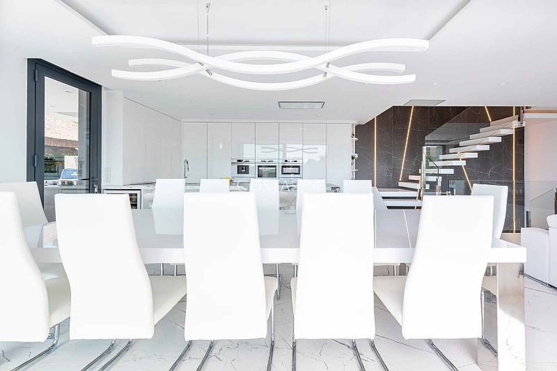 Das Innere der Villa ist mit luxuriösen Merkmalen ausgestattet, die maximalen Komfort garantieren. Marmorböden verleihen einen Hauch von Eleganz, während die Fußbodenheizung das ganze Jahr über eine angenehme Temperatur gewährleistet. Die Villa ist komplett möbliert und mit hochwertigen Geräten ausgestattet, was einen reibungslosen Umzug erleichtert. Elektrische Rollläden und das Smart-Home-System bieten zusätzlichen Komfort und Sicherheit. Darüber hinaus sorgt die Klimaanlage in den wärmeren Monaten für eine kühle und angenehme Umgebung. Einbauschränke in den Schlafzimmern bieten reichlich Stauraum.