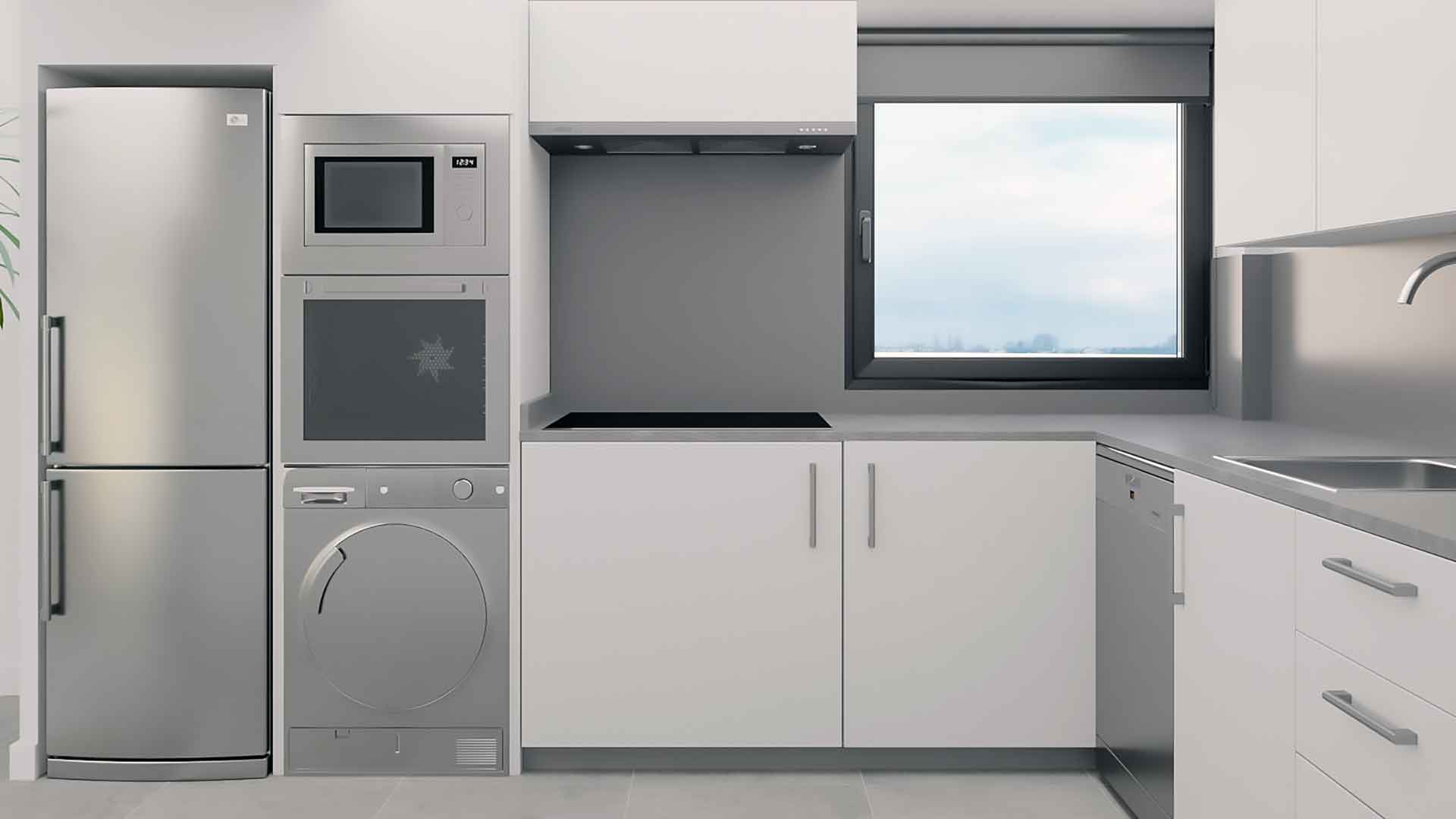 The homes are equipped with modern features that ensure maximum comfort. Porcelain tile floors add a touch of elegance and durability. Technology is present in every detail, with a video intercom, electric shutters, and a smart home system that facilitates home control. Built-in wardrobes offer ample storage space, while the pre-installation of air conditioning ensures a pleasant environment year-round. The layout includes options for 1 or 2 bedrooms and 1 or 2 bathrooms, adapting to different needs and lifestyles. Additionally, all properties come with a garage, providing extra convenience and security.