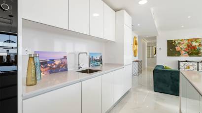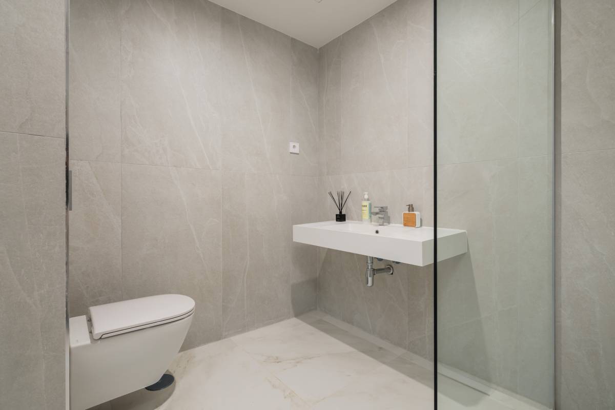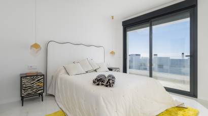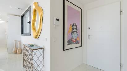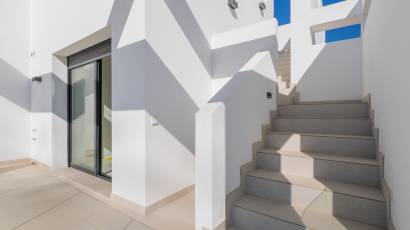 The exteriors of these properties have been designed to maximize enjoyment of the Mediterranean climate. Each home features a private terrace, perfect for relaxing while gazing at the sea. Additionally, the Penthouses include a solarium, providing extra outdoor space for sunbathing or enjoying outdoor gatherings. For those seeking an extra touch of luxury, some properties feature a private pool, offering a personal oasis of tranquility. The integration of electric blinds and a video intercom system ensures both comfort and security, allowing full control over the outdoor environment.