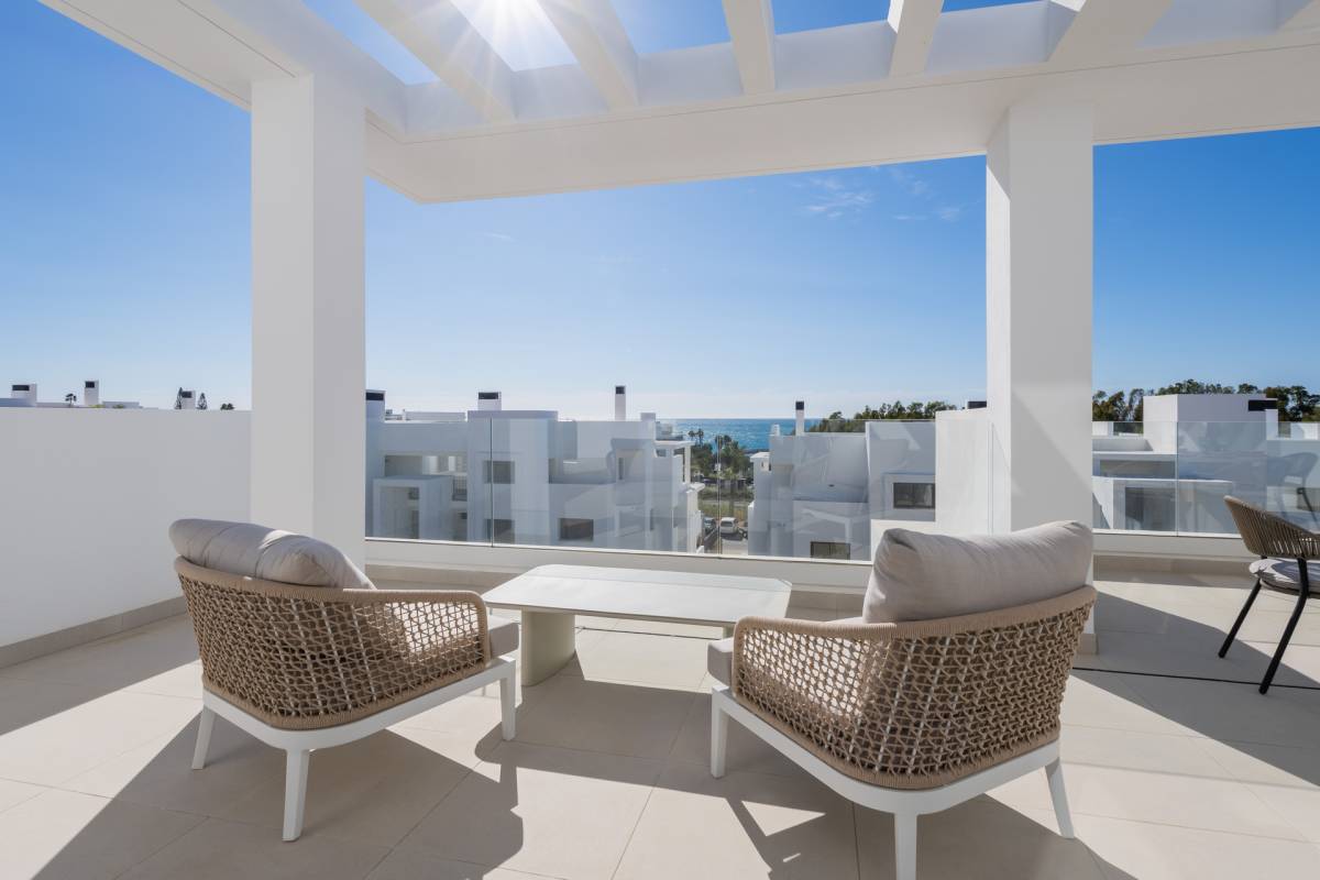 Located in the beautiful town of Estepona, this exclusive residential complex offers a selection of 5 properties including Apartments and Penthouses. Designed for those seeking a sophisticated lifestyle, each home boasts stunning sea views, situated just 200 meters from the coast. This proximity to the sea not only guarantees spectacular views but also quick and convenient access to the area's beaches. Additionally, the strategic location allows for a 40-minute drive to the airport, facilitating connections to international destinations. This residential is ideal for those who value both tranquility and accessibility, offering a perfect environment to enjoy life on the Costa del Sol.