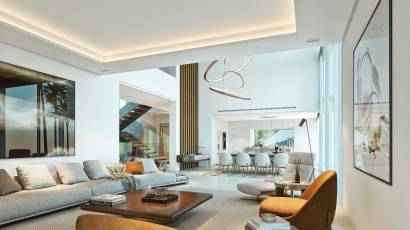 The interior of these villas in Ojén is designed with a focus on comfort and modernity. Porcelain tile floors add a touch of sophistication and are easy to maintain. The layout includes options for 4 to 7 bathrooms, ensuring comfort for all residents. The villas are equipped with air conditioning and underfloor heating, ensuring a pleasant atmosphere year-round. Integrated home automation allows efficient control of home functions, while high-end appliances facilitate daily tasks. Built-in wardrobes offer practical and stylish storage. Additionally, the video intercom and electric car charging add an extra level of convenience and security.