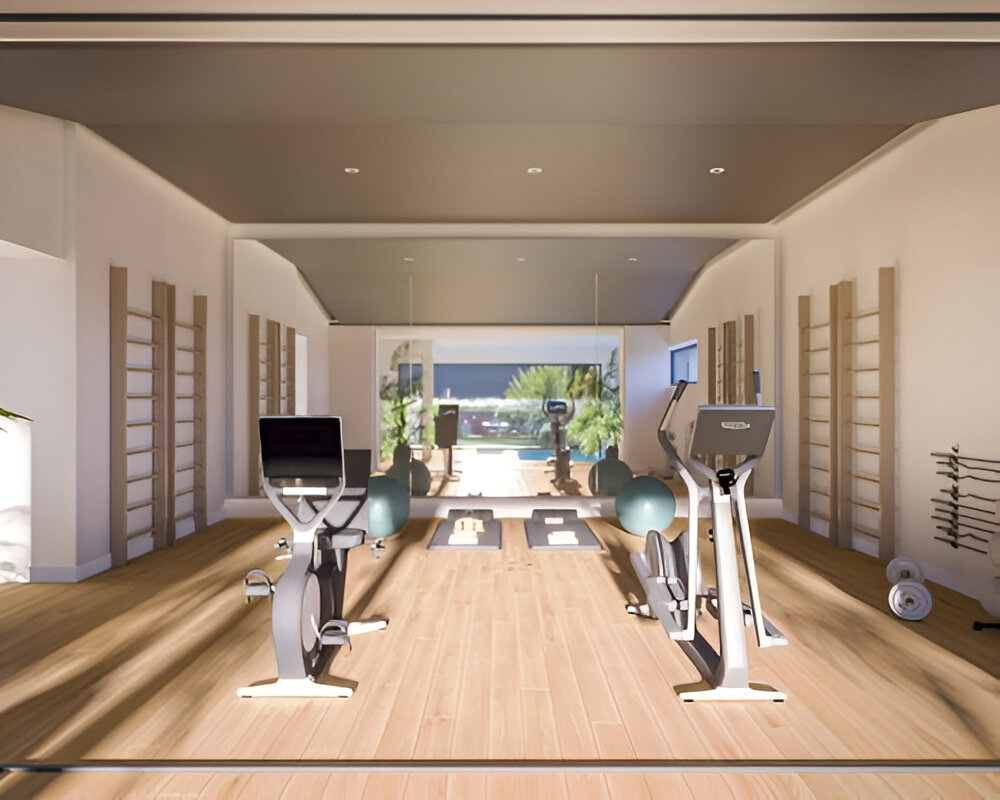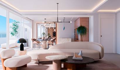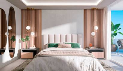 The interior of the homes is carefully designed to offer a cozy and functional space. The layout options include properties with 2 or 3 bedrooms and 2 bathrooms, adapting to different family needs. High-quality finishes include air conditioning and built-in wardrobes, ensuring comfort and practicality. Some units also feature a jacuzzi, adding a touch of luxury and relaxation. The arrangement of the interior spaces is designed to make the most of the sea views, creating a bright and open environment.