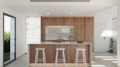 The outdoor areas of these properties are designed to fully enjoy the Mediterranean climate. Each villa has a private garden, perfect for creating a personal oasis of tranquility. The terraces offer additional outdoor space, ideal for sunset dinners or relaxing moments with sea views. Additionally, there is an option to include a private pool, adding a touch of luxury and exclusivity. Pergolas provide shade and comfort, making the outdoor spaces welcoming year-round.