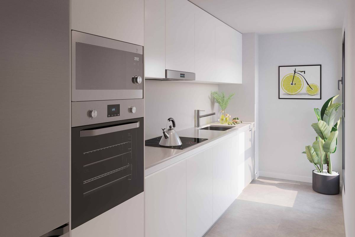 The interiors of the homes are carefully designed to offer comfort and functionality. The apartments, ground floors, and penthouses feature 2 or 3 bedrooms and 2 bathrooms, adapting to different family needs. Porcelain tile floors add a touch of elegance and durability, while built-in wardrobes provide efficient storage. Additionally, the homes are equipped with charging points for electric cars, reflecting a commitment to sustainability and modernity.