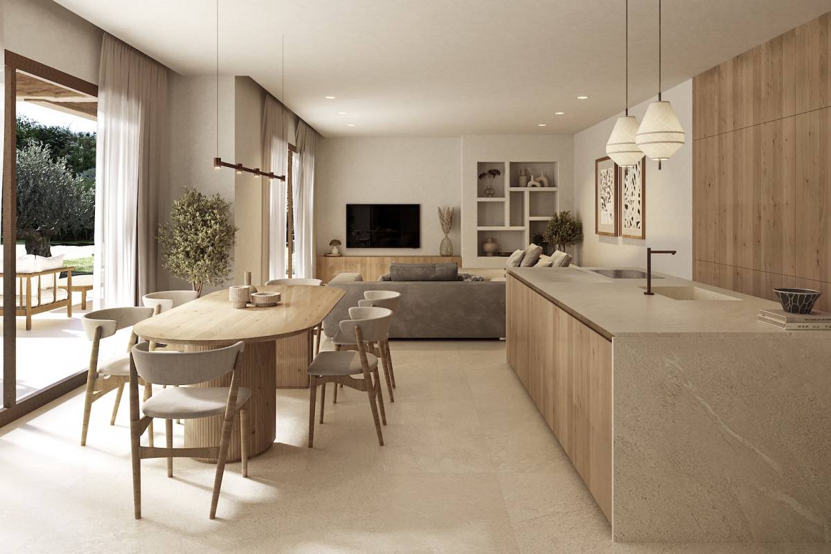 The exterior of the villas in Benissa is carefully designed to maximize enjoyment of the Mediterranean climate. Each property includes a private garden, perfect for enjoying outdoor moments. Additionally, the villas feature a spacious terrace, ideal for relaxing or entertaining guests. The presence of a pergola adds a touch of elegance and functionality, providing shade and style to the outdoor space. The jewel of the exterior is the private pool, offering an oasis of freshness and fun just steps from the front door.