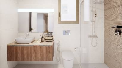 The residential common areas include a community gym, ideal for maintaining an active lifestyle without leaving home. Additionally, the community pool offers a perfect place to relax and enjoy the sun. The landscaped areas provide a natural and tranquil environment, perfect for walking or simply enjoying nature.