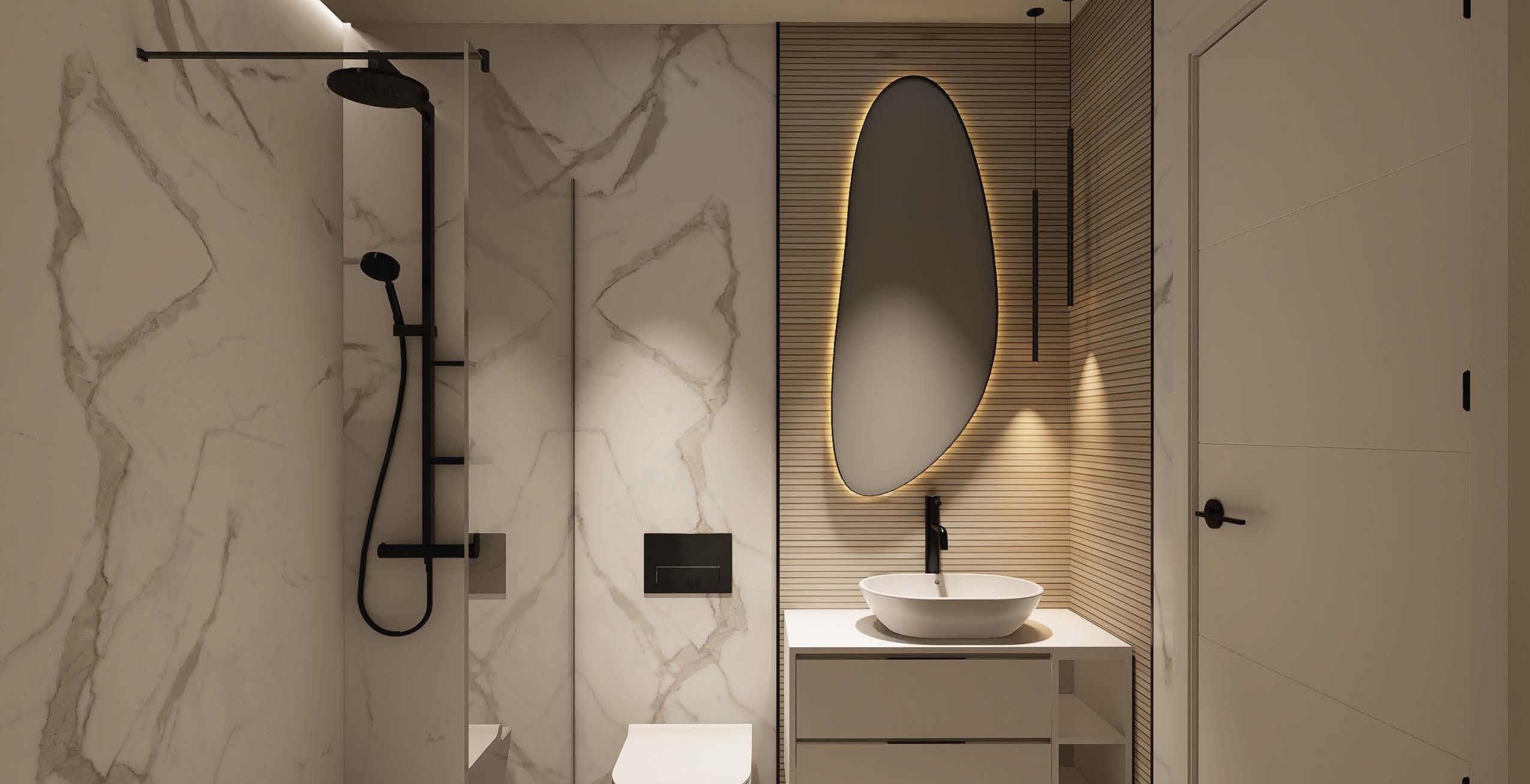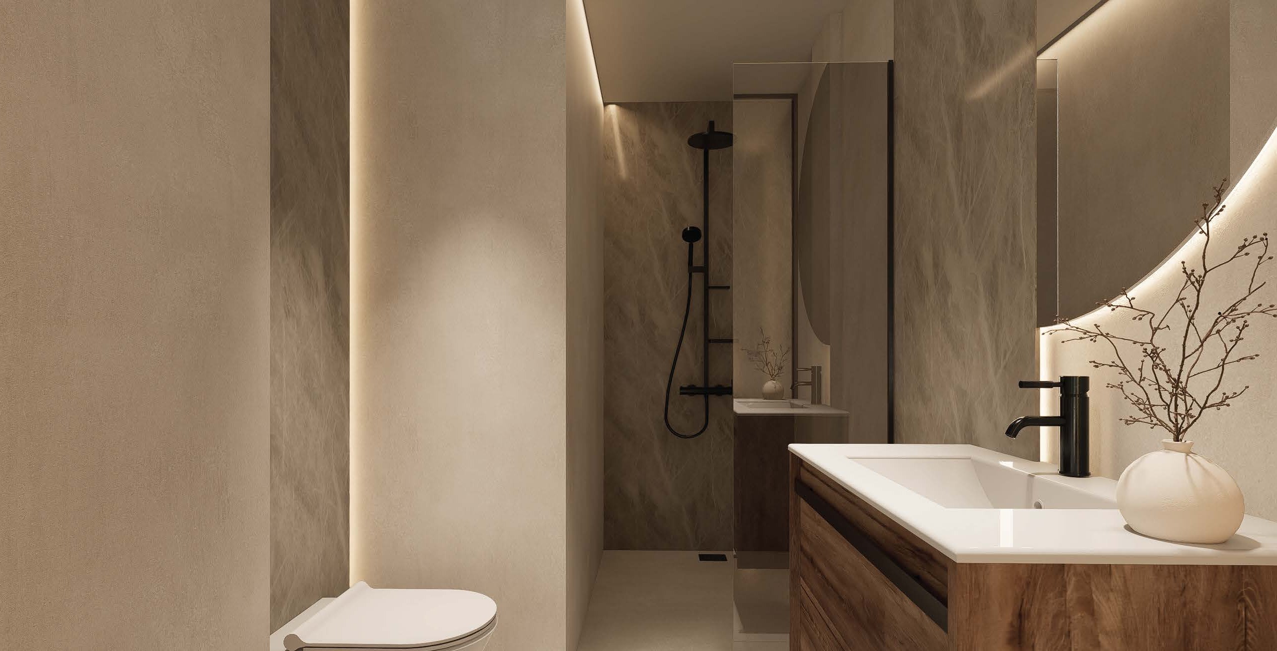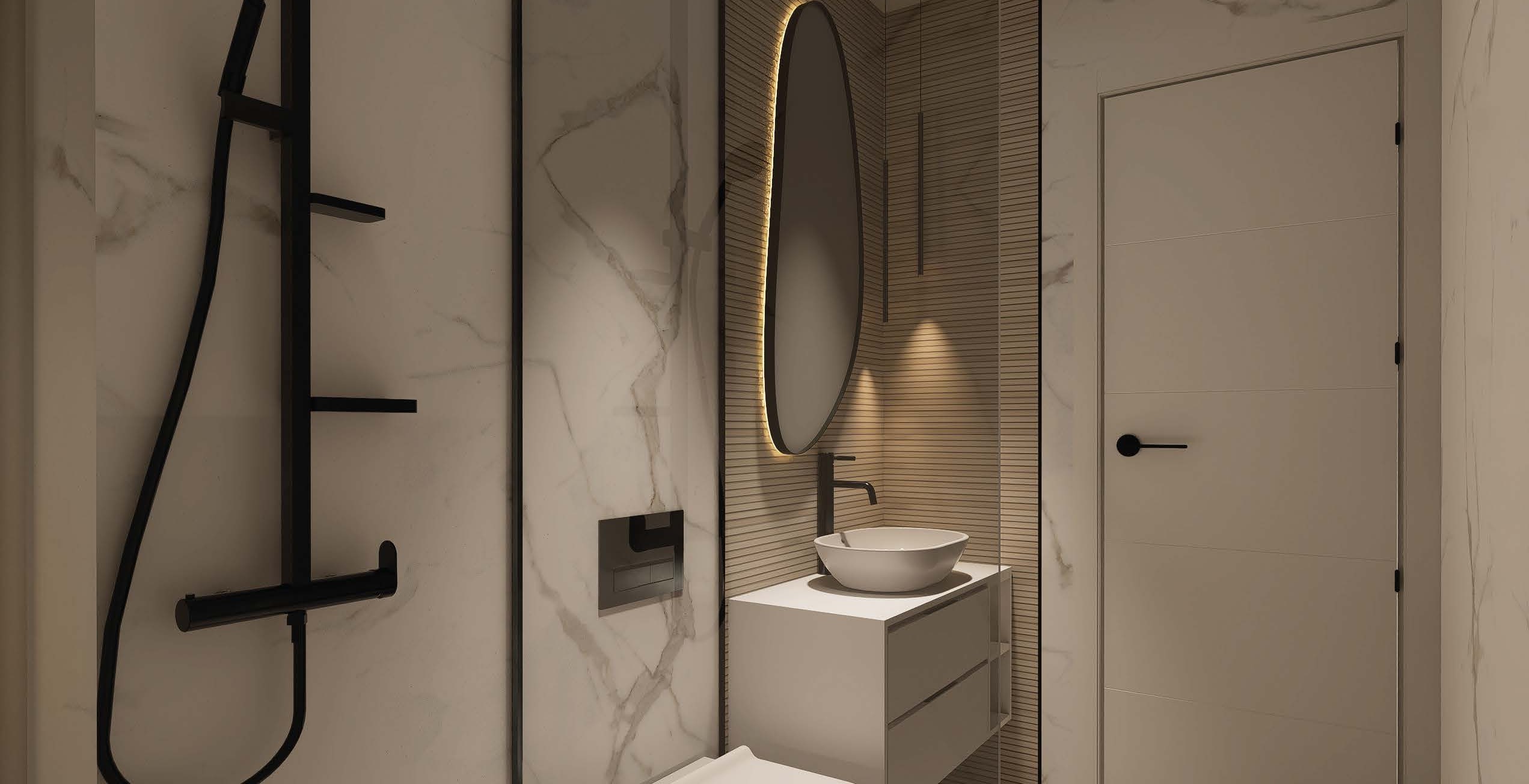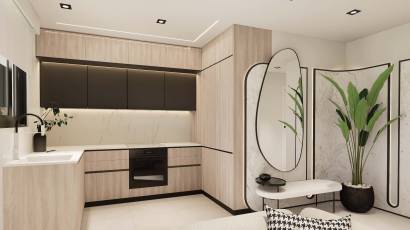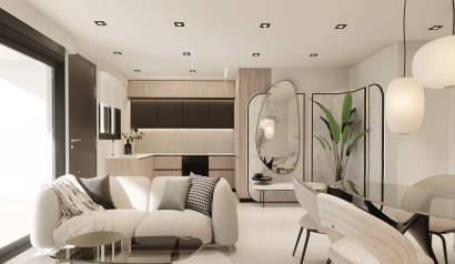 The exteriors of these bungalows are designed to maximize enjoyment of the Mediterranean climate. Each property features a private garden, perfect for creating a personal green space or enjoying outdoor moments. Additionally, the terraces offer an ideal place to relax or share with friends and family. For those seeking panoramic views, the high-bungalows include a solarium, providing additional space for leisure and relaxation. The proximity to the sea adds special value, allowing enjoyment of the sea breeze and beach walks just one kilometer away.