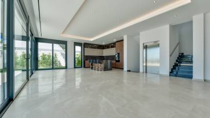 The interior of the villas in Golf Bahía is designed to offer maximum comfort and functionality. Ceramic floors add a modern and elegant touch to each room. The villas are equipped with high-quality appliances, ensuring that the kitchen and other areas of the home are practical and efficient. Integrated home automation allows full control of home functions, from lighting to climate control, enhancing daily comfort. Electric blinds offer easy control of natural light and privacy. Built-in wardrobes in the bedrooms provide ample storage space, maintaining order and organization in the home.