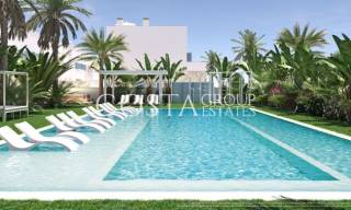 The exteriors of these homes are designed to maximize enjoyment of the Mediterranean climate. Each property features a private terrace, ideal for outdoor relaxation or al fresco dining. Some types include a solarium, providing additional space for sunbathing or enjoying the views. Additionally, the option of having a private garden adds a touch of nature and privacy. For those seeking a touch of luxury, some homes offer a private pool, perfect for cooling off on hot days. The presence of a garage ensures convenience and security for vehicle parking.