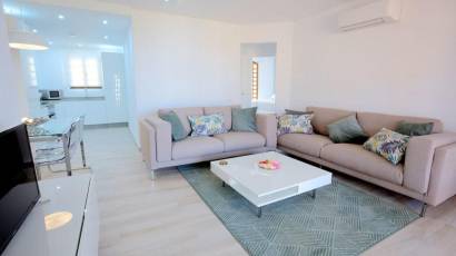 The exteriors of this residential complex are designed to fully enjoy the surroundings. Each apartment features a private terrace, perfect for relaxing outdoors and enjoying the Mediterranean climate. Additionally, some apartments offer a solarium, providing extra space for leisure and relaxation. The common areas include well-maintained gardens, ideal for peaceful walks or for children to play safely.