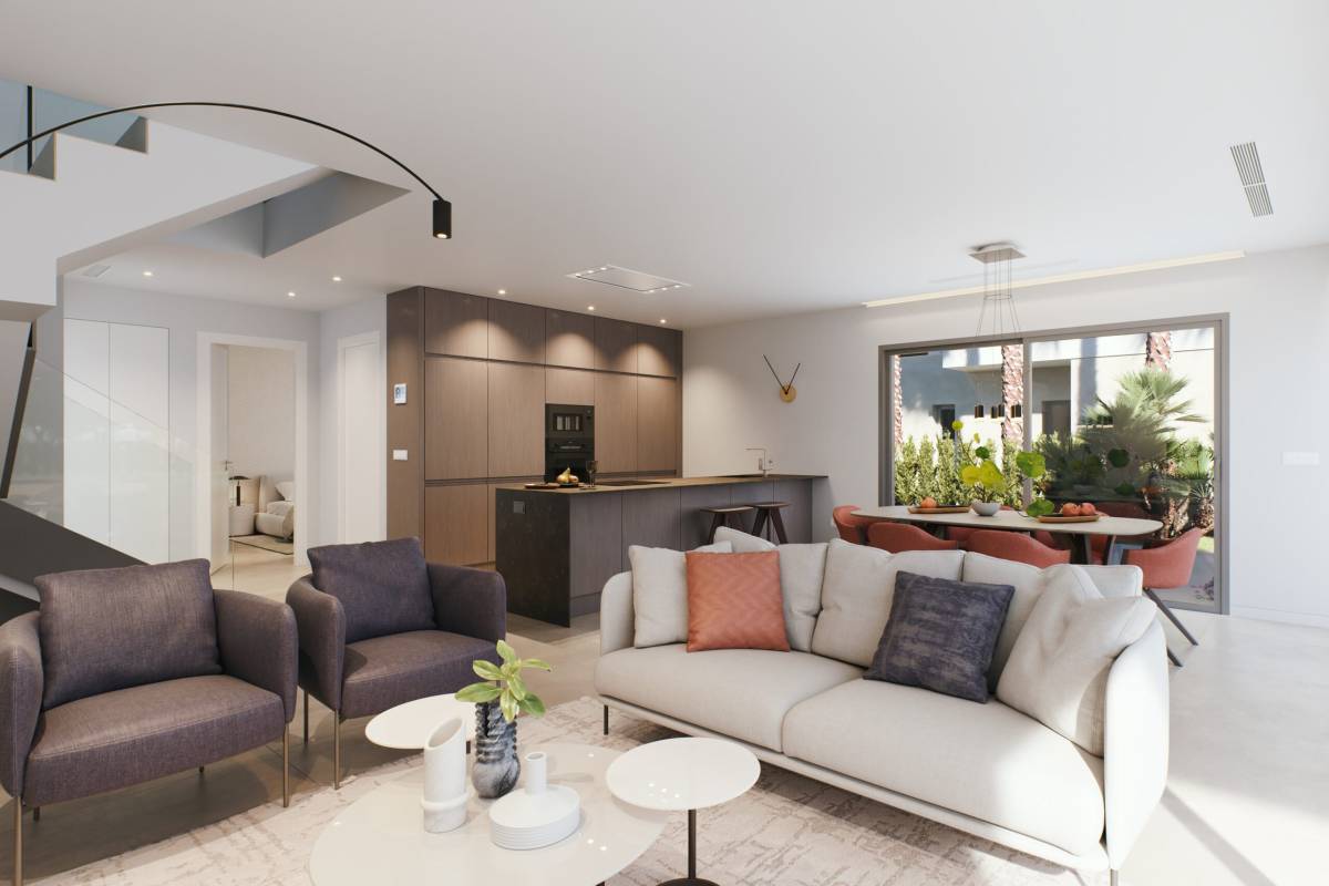 The properties feature outdoor spaces designed to maximize enjoyment of the Mediterranean climate. Each home has a private garden, perfect for creating a personal oasis of relaxation. Additionally, the terraces offer extra space to enjoy outdoor dining or simply relax at the end of the day. The inclusion of a private pool in each property adds a touch of luxury, allowing residents to enjoy a refreshing dip in the comfort of their home. These outdoor spaces are designed to offer privacy and comfort, becoming the perfect place to enjoy unforgettable moments with family and friends.