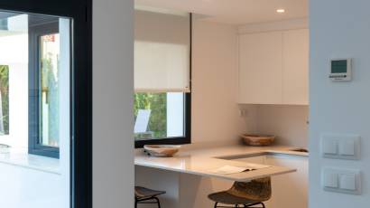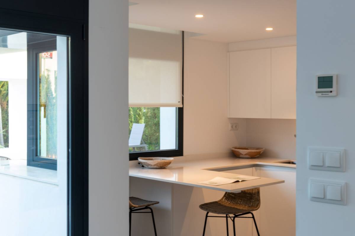 The properties feature an exterior design that includes a spacious garden and terrace, perfect for enjoying the Mediterranean climate. The presence of a garage provides convenience and security for parking. The location, a short distance from the sea, allows for panoramic views and sea breezes, making these outdoor spaces ideal for relaxation and outdoor entertainment.