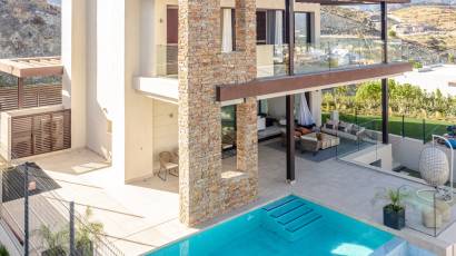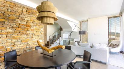 The interior of the villa is designed with a focus on comfort and modernity. With three bedrooms and three bathrooms, the property's layout is intended to offer privacy and space to its residents. Porcelain tile floors add a touch of sophistication and are easy to maintain. The villa is equipped with modern appliances and a home automation system that facilitates the management of home functions. Built-in wardrobes offer efficient storage, while underfloor heating ensures a warm and cozy environment during the colder months. Additionally, the property features a solarium, an additional space that allows for enjoying the views and sun in total privacy.