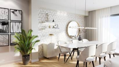 The homes offer a variety of layouts to suit different needs, with options of 2, 3, and 4 bedrooms and 2 or 3 bathrooms. The interiors are designed with a focus on functionality and comfort, incorporating porcelain tile floors and built-in wardrobes that optimize space and storage. The presence of terraces in each unit allows natural light to enter and provides additional space for leisure and relaxation.
