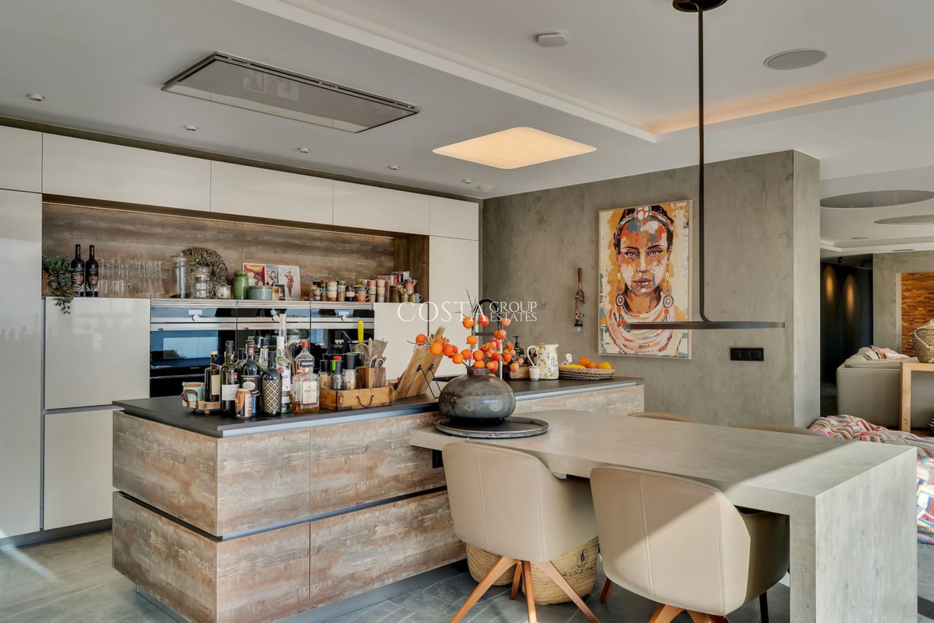 Spectacular villa overlooking the Mediterranean Sea – Raco de Galeno, BenissaThis unique residence is the true definition of luxury and modern living. Located in the heart of the prestigious Rincón de Galeno residential area in Benissa, it impresses with its modern architecture, panoramic glazing, and southern exposure, which fill the interiors with light. Each level offers breathtaking views of the Mediterranean Sea and the Costa Blanca coastline. The villa has been designed with attention to every detail and spread over four impressive floors, connected by elegant stairs and a panoramic glass elevator. Entrance level The top floor welcomes you with a representative entrance that makes an impression from the very first moment. There are spacious terraces, covered parking spaces with a distinctive sail-shaped pergola, and a hall leading to the elevator and stairs connecting all levels. On the same floor, there is a covered terrace with a unique view of the sea—the perfect place to enjoy your morning coffee in peace and privacy. Night area The lower level is occupied by an elegant bedroom area with three spacious rooms, each with a private bathroom and access to the terrace. One of the bedrooms also offers a walk-in closet for the most demanding owners. Each window offers a view of the sea and the garden, creating a true oasis of peace and relaxation. Living area The ground floor is the heart of the entire residence – an impressive, open-plan living area combining a living room, a kitchen with a large island, and a dining room. Glazed walls open the interior onto a terrace of over 150 m², where there is a spectacular heated infinity pool (78 m²) with a relaxation area. The terrace also features a summer kitchen with a barbecue, an outdoor dining area, a chillout zone, and an outdoor bathroom – the perfect place to celebrate the Mediterranean lifestyle all year round. This level also features a luxurious bedroom (40 m²) with a private lounge, study, dressing room, and spacious bathroom, as well as a guest toilet. Recreation and wellness area The 234 m² basement houses a private entertainment and recreation center: a recreation area with a bar, pool table, and home theater, a modern gym with professional equipment, a luxurious spa with a sauna, jacuzzi, and indoor swimming pool (23 m²) with a counter-current system. This area is complemented by a bathroom, laundry room, utility room, and garage for several cars. Technology and finishes The villa was designed with maximum comfort and modern technological solutions in mind. It offers, among other things: underfloor heating with an aerothermal system, ducted air conditioning supported by split units, a 7.5 kW photovoltaic system (15 panels), smart glass, a home automation system, an integrated audio system, an alarm system, and a fiber optic connection. The entire property is finished with the highest quality materials – from designer woodwork and porcelain floors to elegant bathrooms. Surroundings The property is surrounded by a carefully designed garden with a fountain, relaxation areas, and an automatic irrigation system. The villa is located just 2.5 km from La Fustera beach and the picturesque coastal trail. Nearby are the towns of Moraira and Calpe, offering the best beaches of the Costa Blanca, full infrastructure, medical services, and a wide range of recreational and gastronomic options. This is a residence that combines prestige, privacy, and a unique lifestyle. It is an ideal proposition for those who want to wake up every day in luxury, with a view of the endless blue of the Mediterranean Sea. More details available on request.