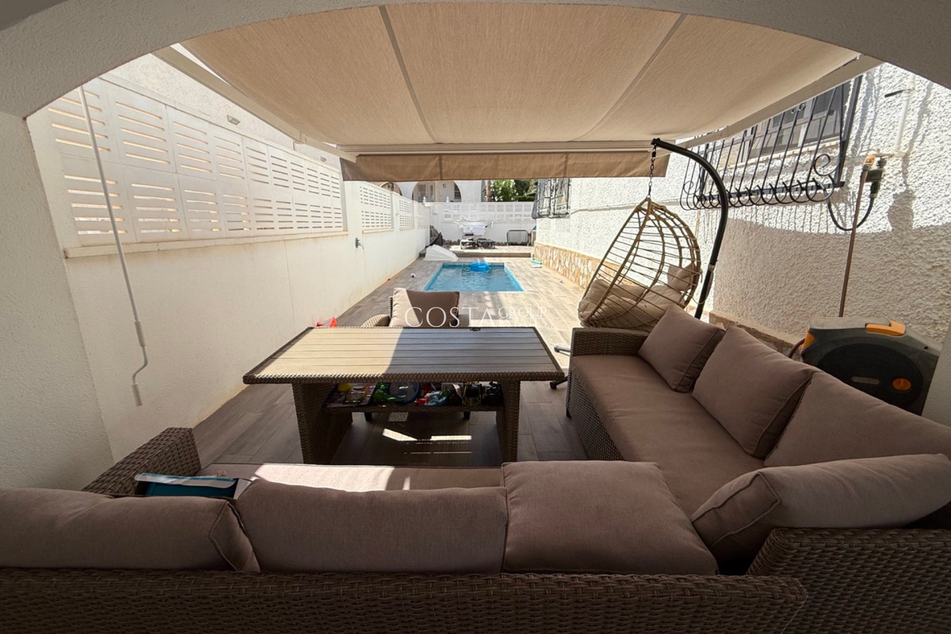 Beautiful, modernized detached villa with a solarium and open (sea) views, located in Las Filipinas, Villamartin (Orihuela Costa). The house is ideally and centrally located within walking distance of all kinds of facilities and necessities, the white sandy beaches that Orihuela Costa has to offer can be reached in no time by car. The house comes fully furnished and has 2 bedrooms with 2 en-suite bathrooms. For more information or a (video) viewing, please contact us as soon as possible!