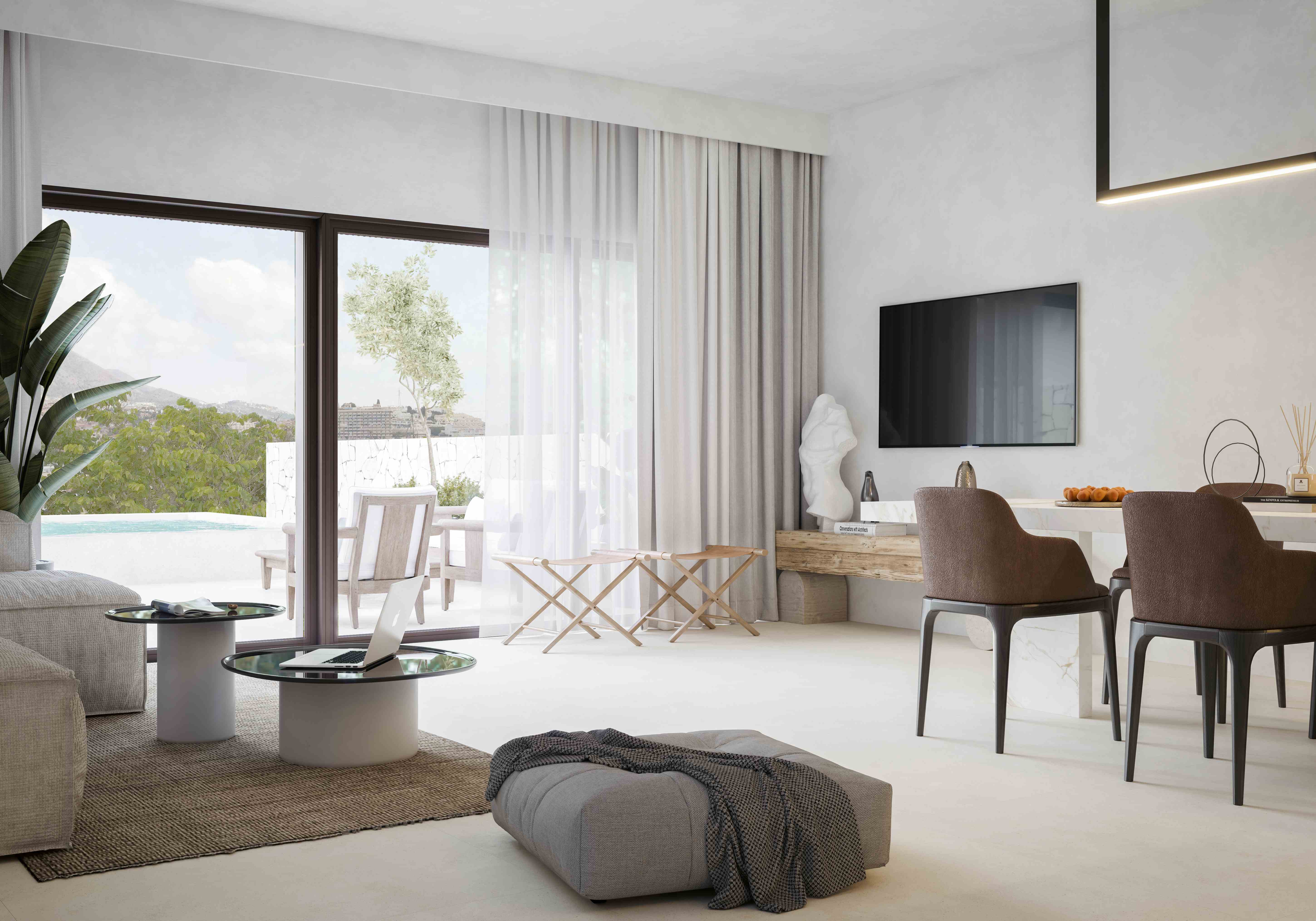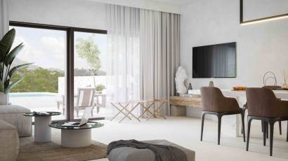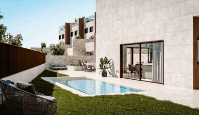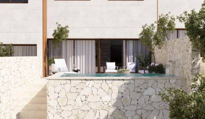 Les extérieurs de ces maisons mitoyennes sont conçus pour maximiser le plaisir du climat méditerranéen. Chaque propriété dispose d'un jardin privé, idéal pour créer un espace vert personnel ou pour profiter de moments en plein air. La présence d'une pergola ajoute une touche d'élégance et de fonctionnalité, permettant de profiter des terrasses à tout moment de la journée. De plus, chaque maison mitoyenne dispose d'un solarium, parfait pour bronzer en toute intimité. L'inclusion d'une piscine privée dans chaque unité offre une oasis personnelle où se rafraîchir pendant les chaudes journées d'été.