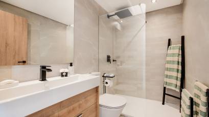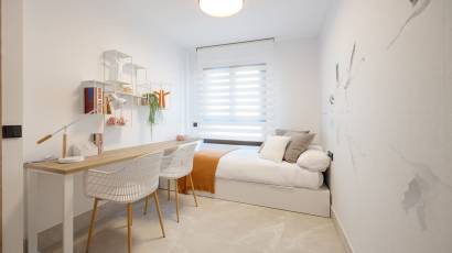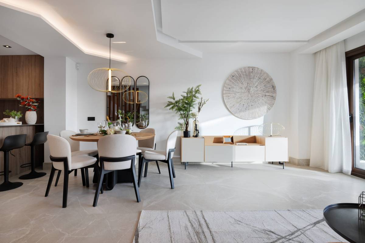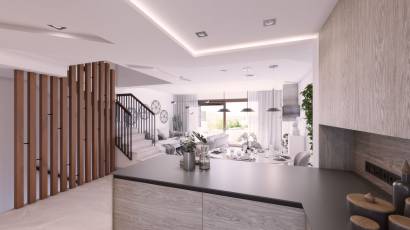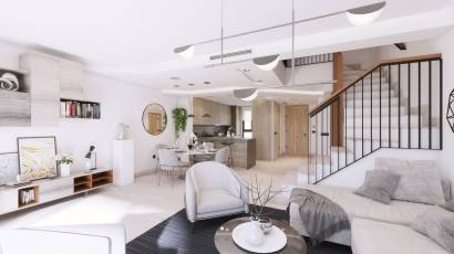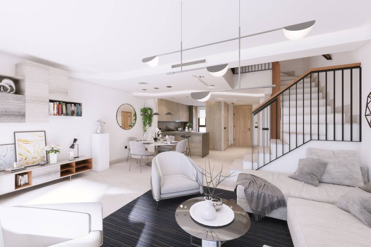 L'intérieur des maisons mitoyennes est conçu pour offrir un confort maximal. Chaque logement dispose de trois chambres et deux salles de bains, offrant un espace vaste et fonctionnel pour toute la famille. Les maisons sont entièrement meublées et équipées d'appareils électroménagers modernes, garantissant que chaque détail est soigné. La climatisation et les placards intégrés sont quelques-unes des caractéristiques qui assurent une expérience de vie confortable et sans souci. Les sols carrelés ajoutent une touche d'élégance et sont faciles à entretenir.