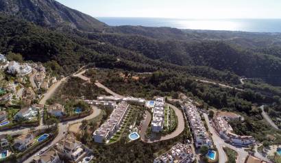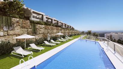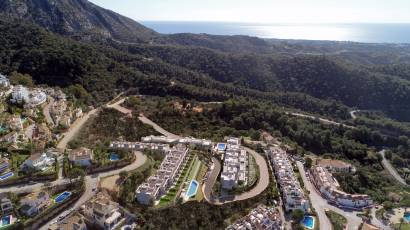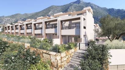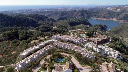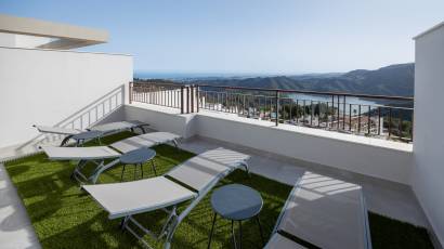 Les extérieurs de ce complexe à Cerros del Lago sont soigneusement conçus pour compléter l'environnement naturel. Chaque maison dispose d'une terrasse privée, idéale pour profiter de la vue sur la mer et du climat méditerranéen. De plus, les résidents ont accès à un solarium, parfait pour se détendre et profiter du soleil dans un cadre privé. La communauté offre également de vastes espaces paysagers qui invitent à se promener et à profiter de la nature.