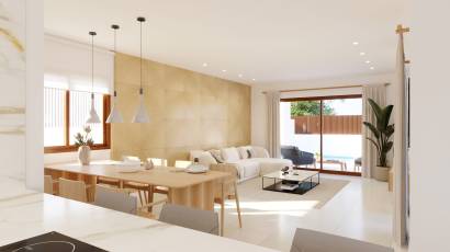 Les maisons mitoyennes disposent d'un design extérieur incluant terrasses et jardins privés, idéaux pour profiter du climat méditerranéen. De plus, il est possible d'ajouter un solarium, permettant de maximiser les vues et le soleil tout au long de l'année. Les espaces communs sont entourés de jardins bien entretenus, offrant une atmosphère paisible et relaxante pour tous les résidents.