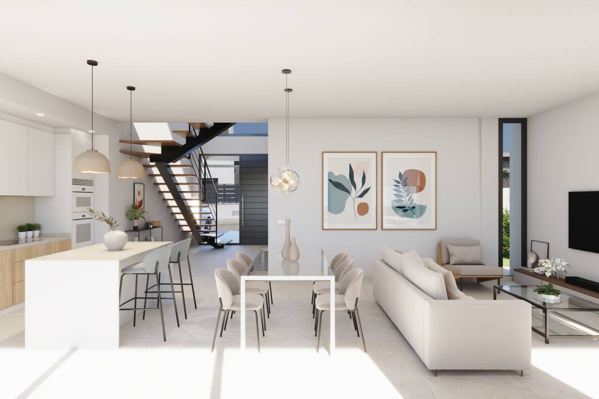 Située dans la charmante localité de San Javier, cette collection exclusive de maisons mitoyennes offre un style de vie moderne et confortable. Avec un total de quatre propriétés, chacune est conçue pour répondre aux besoins des familles contemporaines. La proximité de la mer, à seulement 5 km, offre un cadre idéal pour profiter de la côte, tandis que l'aéroport se trouve à 36,6 km, facilitant l'accès aux connexions internationales. Ces logements se distinguent par leur design fonctionnel et leurs finitions de qualité, offrant un espace accueillant et élégant pour vivre.
