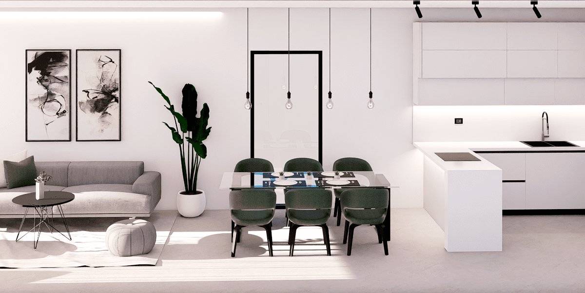 L'intérieur des logements est soigneusement conçu pour offrir confort et modernité. Les appartements, rez-de-chaussée et penthouses disposent de sols en grès cérame, qui apportent une touche élégante et sont faciles à entretenir. Toutes les propriétés sont équipées de la climatisation, garantissant un environnement agréable tout au long de l'année. Les placards intégrés offrent un espace de rangement généreux, tandis que l'interphone vidéo ajoute un niveau supplémentaire de sécurité et de commodité. La distribution comprend deux chambres et deux salles de bains, s'adaptant aux besoins de différents types de familles.