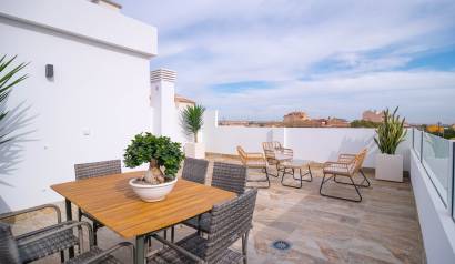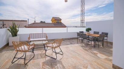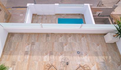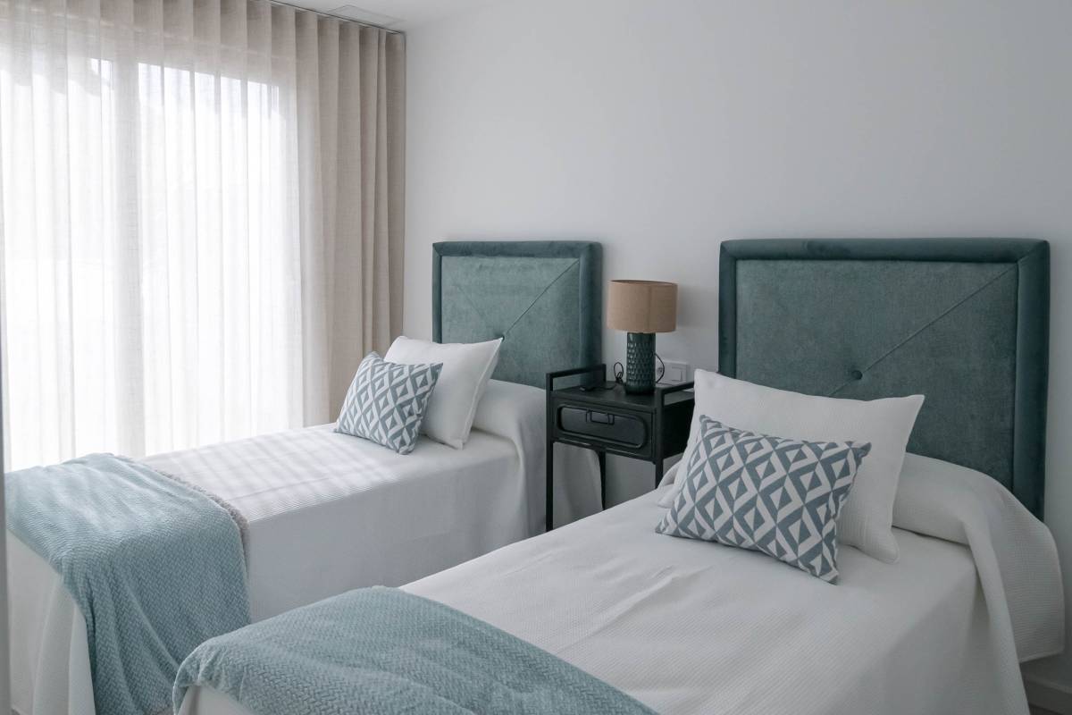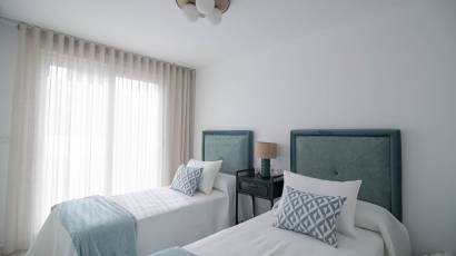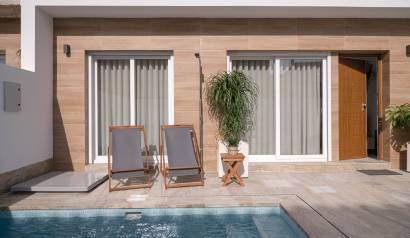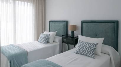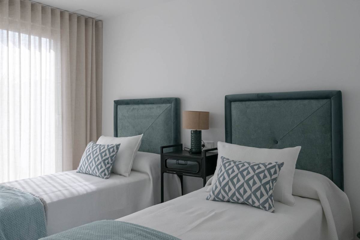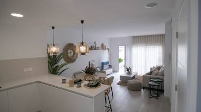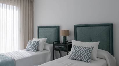 Les extérieurs de ces maisons mitoyennes se distinguent par un design pensé pour profiter du climat méditerranéen. Chaque logement dispose d'une terrasse privée, idéale pour se détendre en plein air ou profiter de repas en famille. De plus, les maisons mitoyennes possèdent un solarium, parfait pour bronzer en toute intimité. L'inclusion d'une piscine privée dans chaque unité ajoute une touche de luxe et d'exclusivité, permettant de se rafraîchir lors des journées les plus chaudes. L'environnement du complexe est conçu pour offrir tranquillité et intimité, avec des jardins qui complètent le paysage naturel de la région.