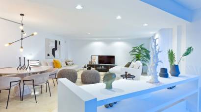 L'intérieur de ces maisons est conçu pour offrir un confort et une fonctionnalité maximaux. Les options de distribution incluent des maisons avec quatre ou cinq chambres et cinq ou six salles de bains, s'adaptant à différents besoins familiaux. Les intérieurs sont entièrement meublés et équipés d'appareils de dernière génération. Le système domotique permet un contrôle efficace de la maison, tandis que le chauffage par le sol et la climatisation garantissent une température agréable toute l'année. Les placards intégrés offrent un rangement pratique et élégant, et le vidéophone ajoute un niveau supplémentaire de sécurité.