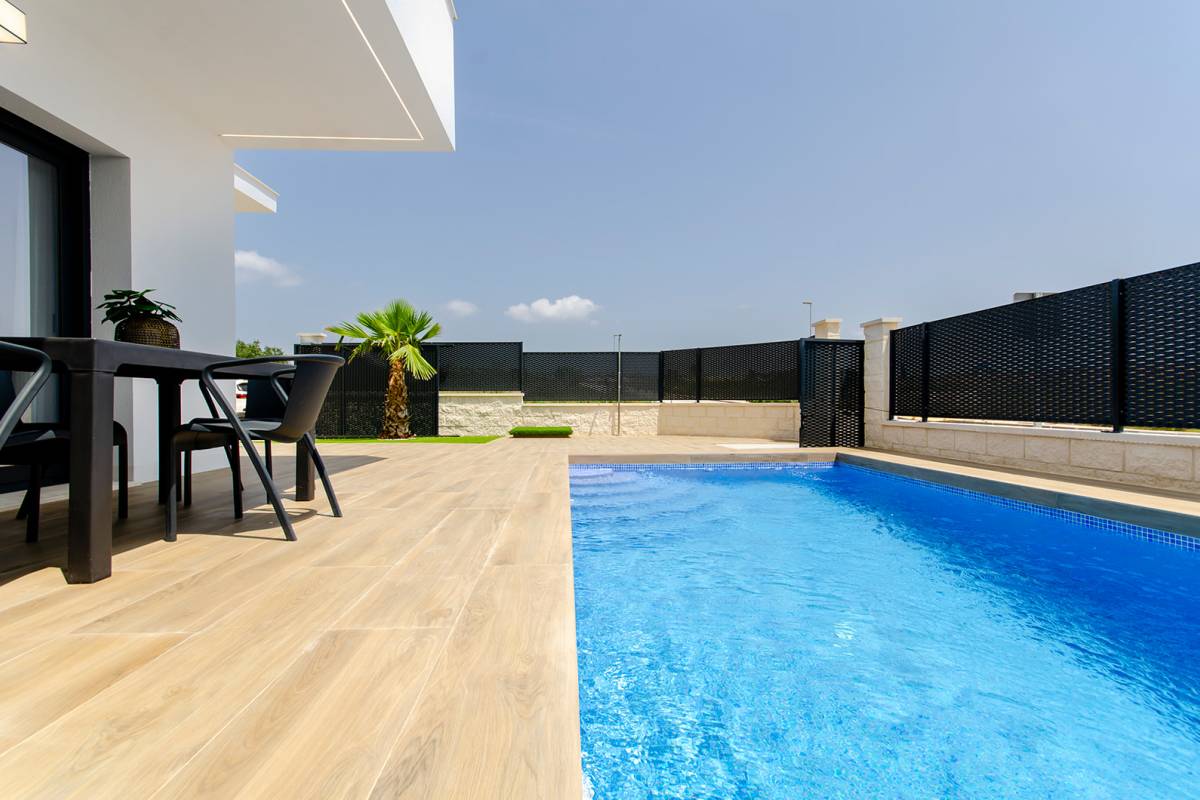 Les extérieurs de ces maisons indépendantes à Orihuela sont conçus pour maximiser le plaisir de l'environnement. Chaque propriété dispose d'un jardin privé, idéal pour créer une oasis personnelle de tranquillité. Les terrasses offrent un espace supplémentaire pour se détendre ou recevoir des invités, tandis que l'option d'un solarium permet de profiter de vues panoramiques et du soleil toute l'année. De plus, chaque maison dispose d'une piscine privée, parfaite pour se rafraîchir lors des journées chaudes. L'inclusion d'une pergola ajoute une touche d'élégance et de fonctionnalité, offrant de l'ombre et du style aux espaces extérieurs.